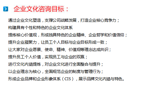 作为一家国内知名的、大型的、专业性的综合管理咨询公司,我们充分发挥各咨询业务的协同优势,创造性地将企业文化与战略、品牌、人力资源、制度与流程建设等管理要素相结合,开发出一系列企业文化的提炼、提升、实施与深化的模型、工具和方法。我们认为,企业文化只有与管理有机融合,才能切实提升企业的管理水平,打造企业的核心竞争力!